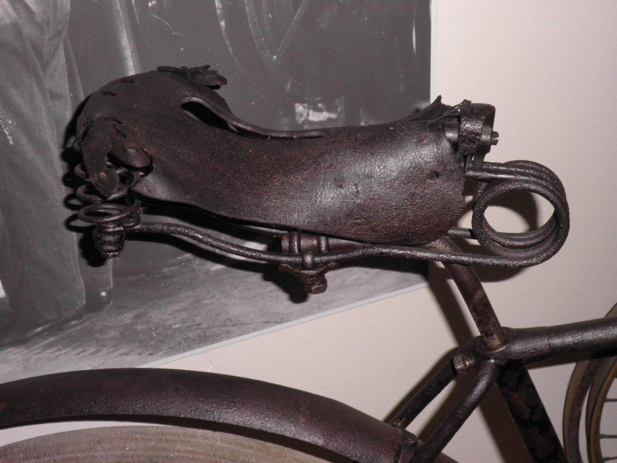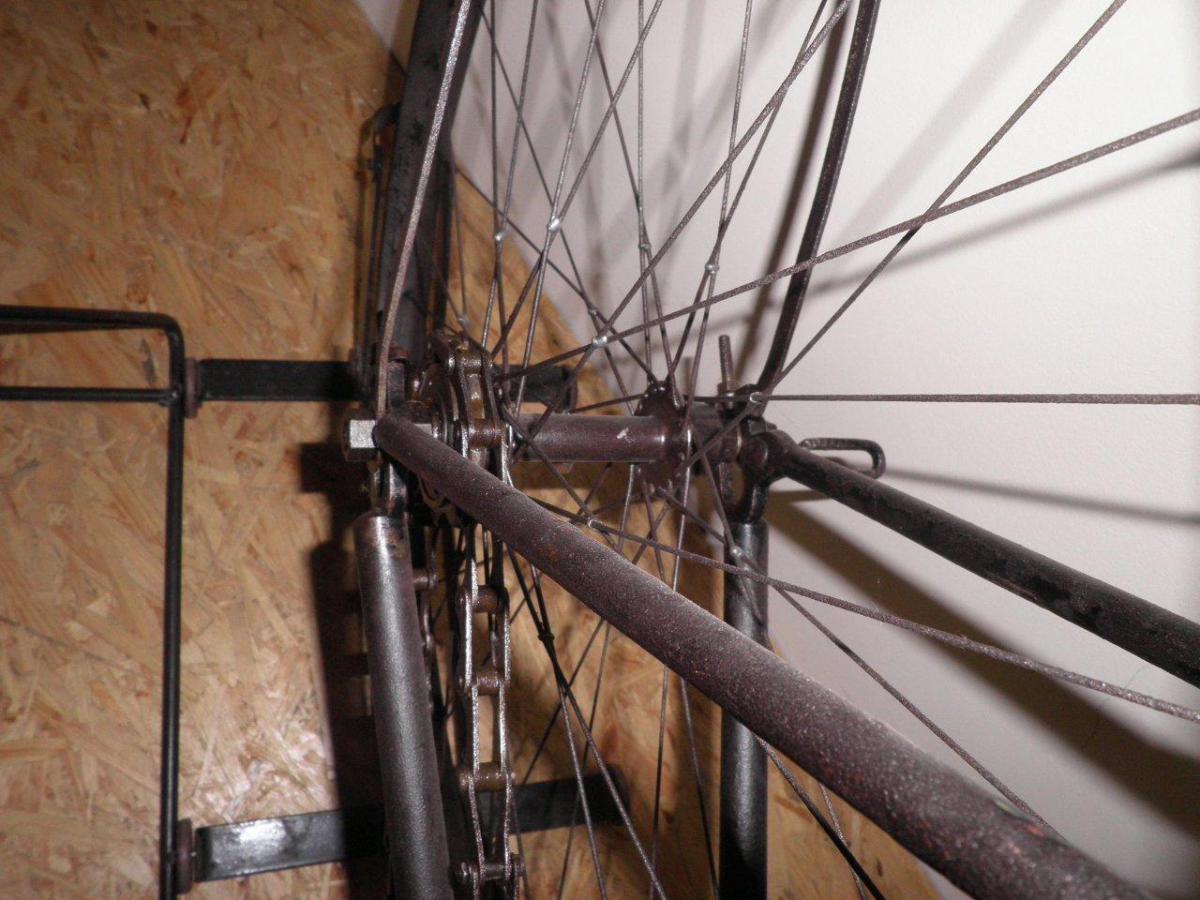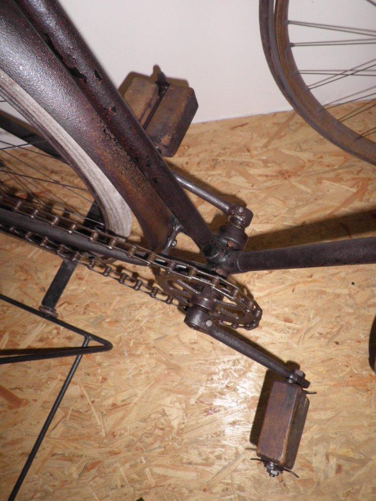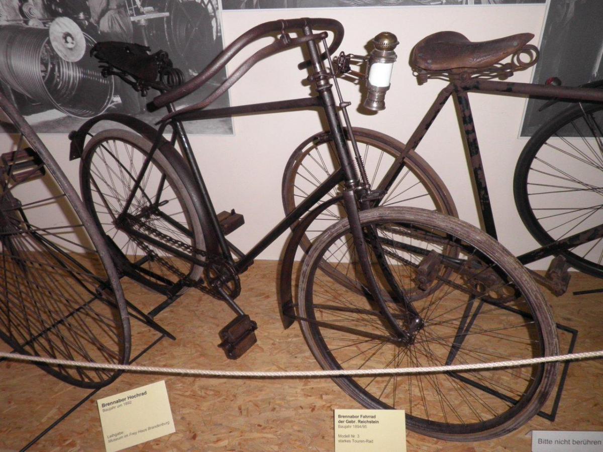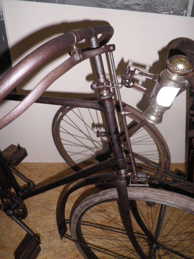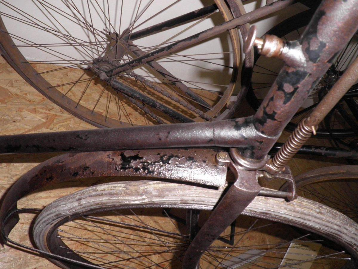 This bike used to be part of the collection of the Brennabor-brb in Brandenburg, Germany. It still has the remains of the original transfer on the head, which proves it is a Brennabor. It is a highly original bike, which even has its original saddle and fenders. The wooden blocks on the pedals are later replacements of the original rubbers.