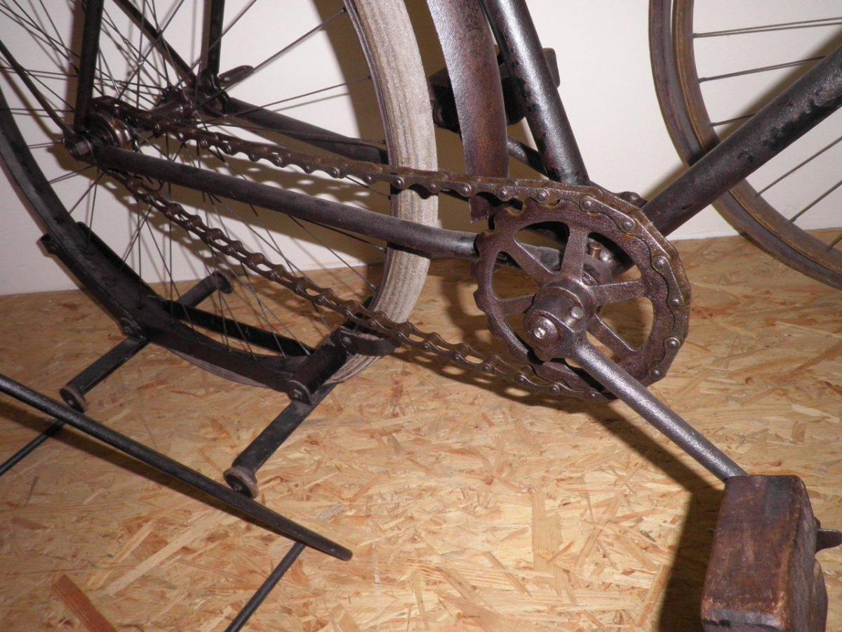It has a lot of details in common with other bikes from those years. With its pneumatic tires it was state of the art in 1893-1895. Some details remind me of French bikes, especially the front brake, which looks very similar to a Clément construction.